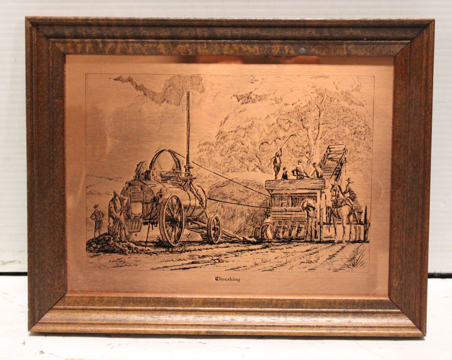 COPPER ETCHED PIC. SIGNED A. LANGFORD "THRESHING"
