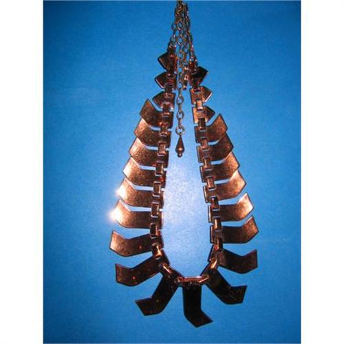 RENOIR SIGNED PIECE, DONE IN THE 1950'S, HAS MATCHING EARRINGS. GREAT CARVED PIECE.LAYS VERY WELL ON THE NECK. THE COPPER HAS A SOFT COLOR TO IT WITH GREAT DEPTH TO THE LAYERING OF THE CARVING THIS ARTIST WORKED OUT OF LOS ANGELES AND CLOSED DOORS IN THE 60'S.