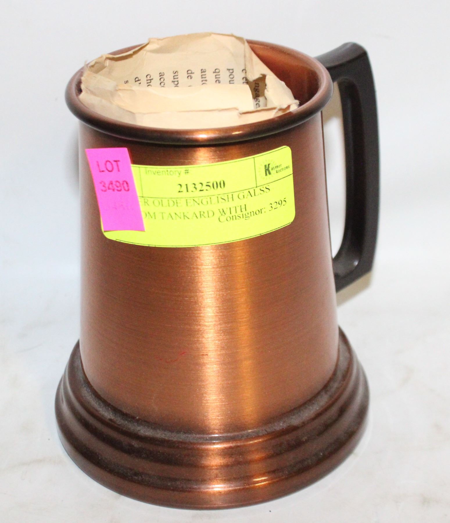 COPPER OLDE ENGLISH GALSS BOTTOM TANKARD WITH