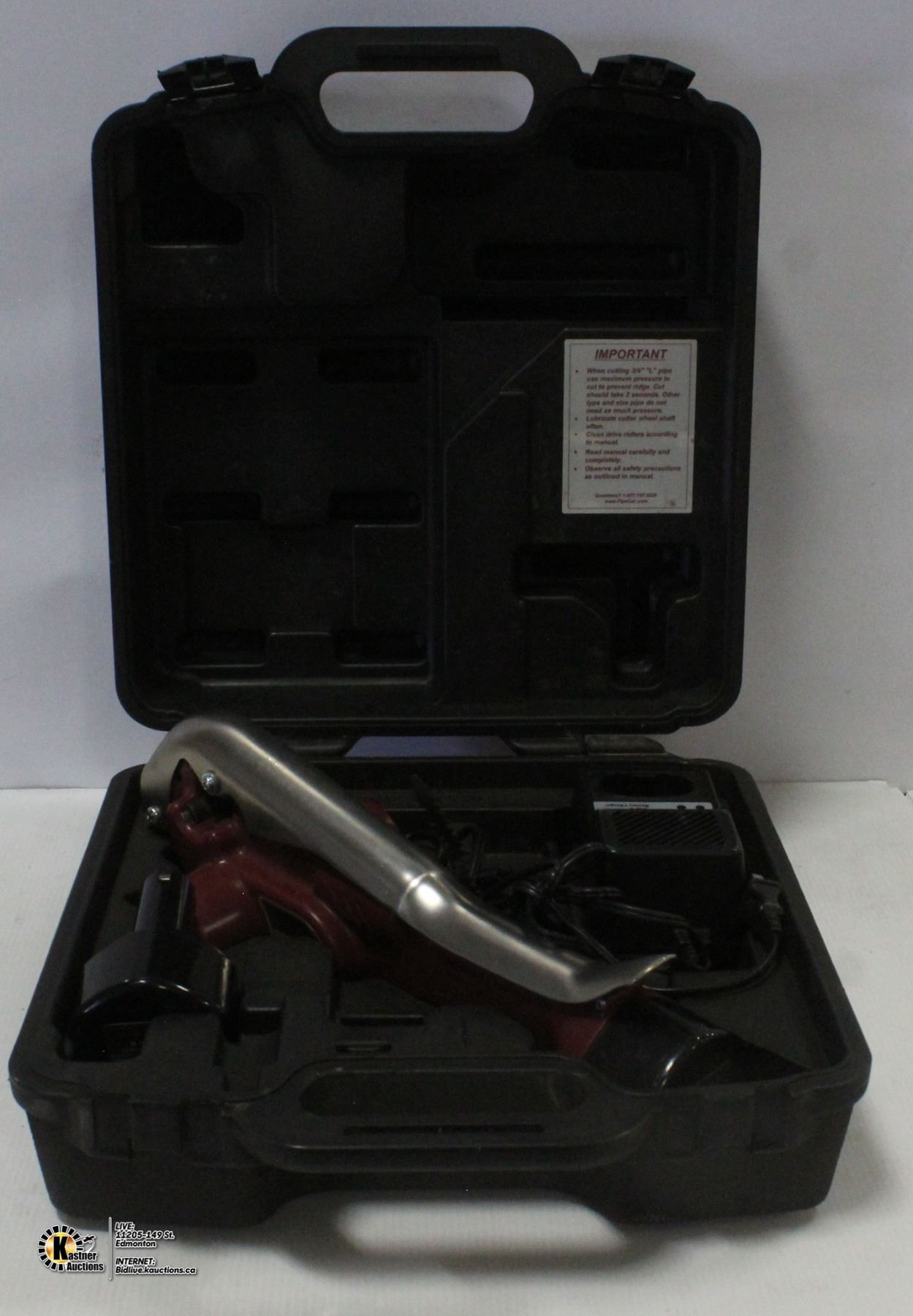 PIPE CAT POWERED COPPER PIPE CUTTER IN CASE WITH TWO BATTERIES. TESTED