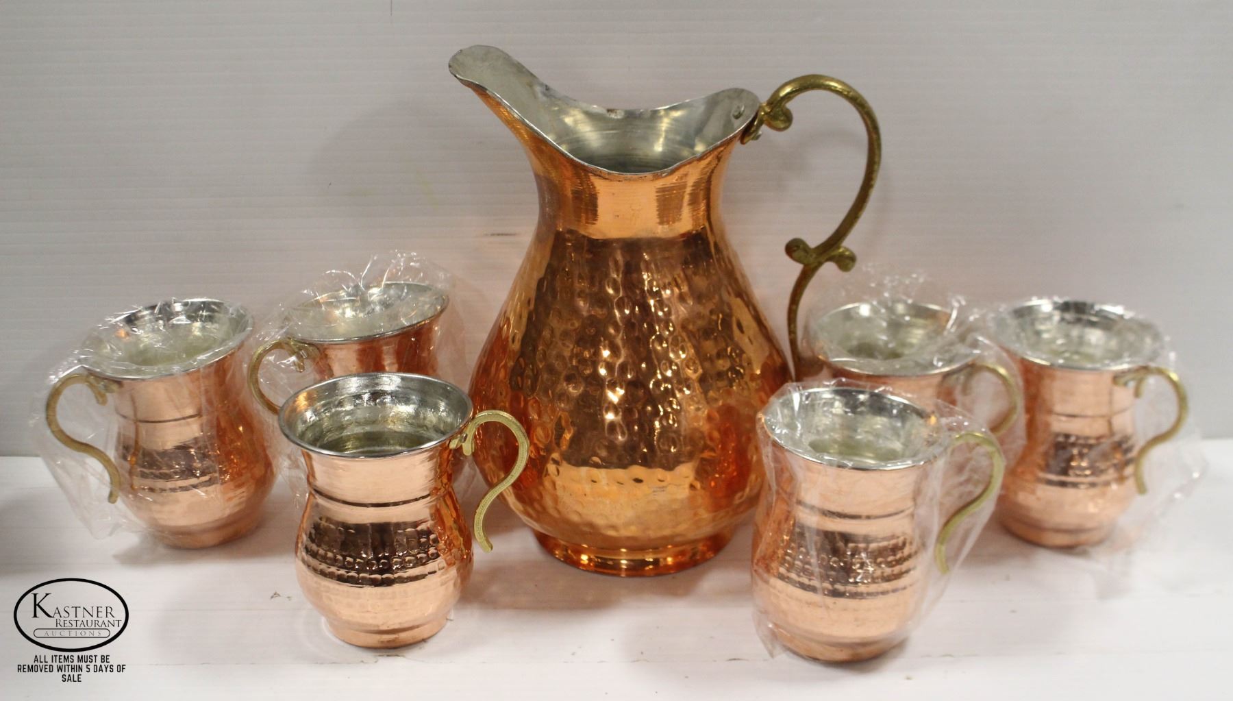 COPPER PLATED PITCHER SOLD WITH 6 COPPER PLATED