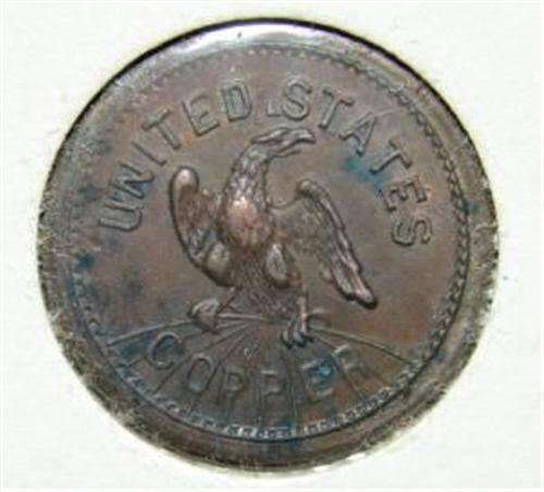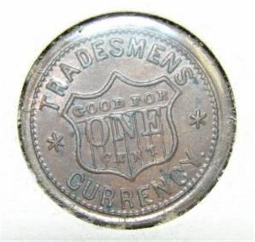 COPPER TRADESMAN CURRENCY TOKEN. Marked “United States/Copper” and “Tradesman/Currency” on reverse.
