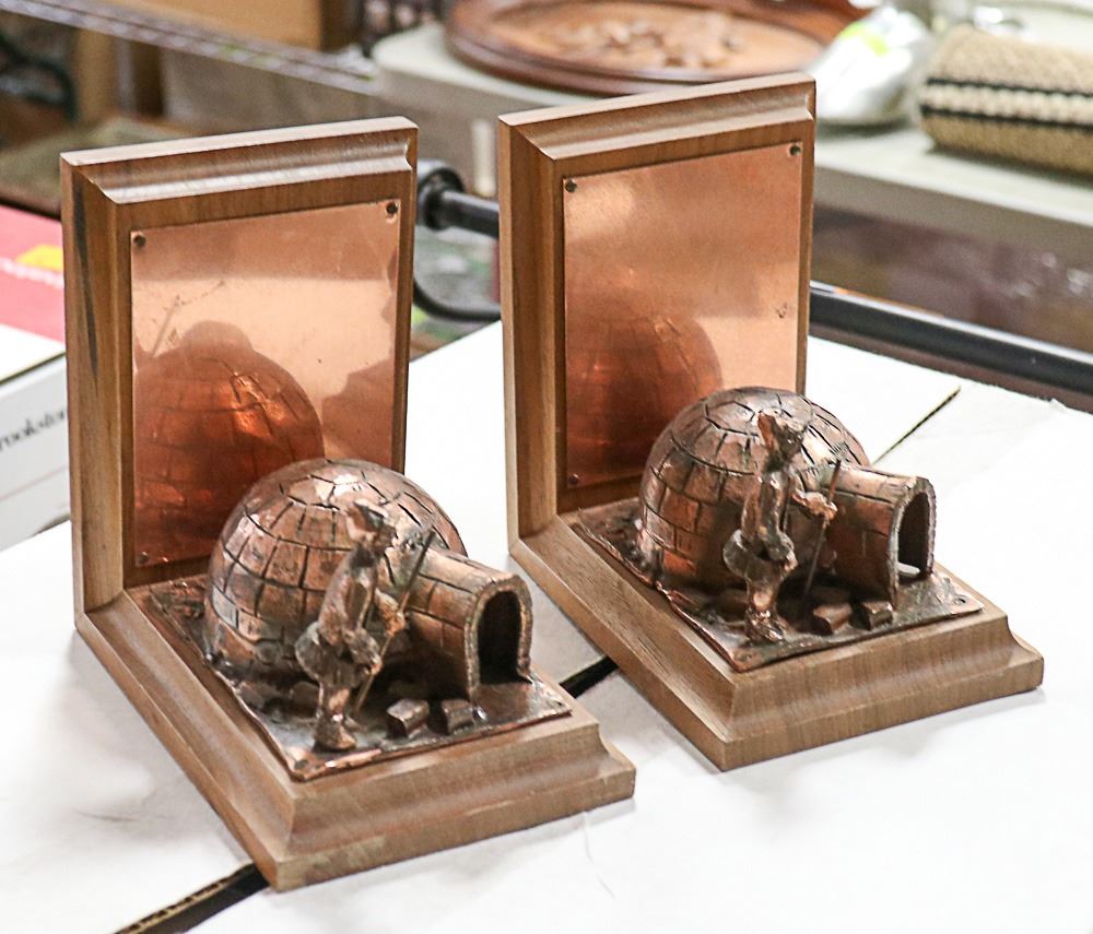 UNIQUE COPPERWARE IGLOO SCENE BOOKENDS