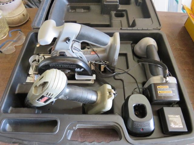 CORDLESS CRAFTSMAN 18 VOLT DRILL, SAW, FLASHLITE