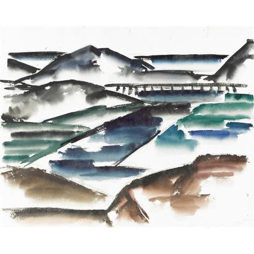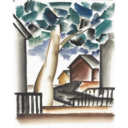 <B>COREEN MARY SPELLMAN (1905-1978)</B></I><BR>Untitled Mountain Landscape with Large Tree, 1933<BR>Watercolor (double sided)<BR>24in. x 19in.<BR>Unsigned, but documented in Mick Spellman's collection<BR>Dated lower right<BR><BR>This watercolor was painted in Provincetown, Massachusetts, while Coreen Spellman was studying with Charles Martin in the summer of 1933.<BR><BR>Provenance:<BR>Estate of Mick Spellman<BR>Acquired from the above by the present owner<BR><BR>Literature:<BR>Picture in, <I>The Artwork of Coreen Mary Spellman (1905-1978),</B></I> by James Graham Baker<BR><BR> <B>Condition Report:</B> Excellent condition. Unframed.<BR><BR><b>Shipping:</b> Requires 3rd Party Shipping (<a target="_blank" href="http://www.heritageauctions.com/common/shipping.php">view shipping information</a>)