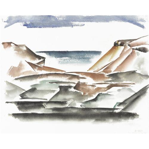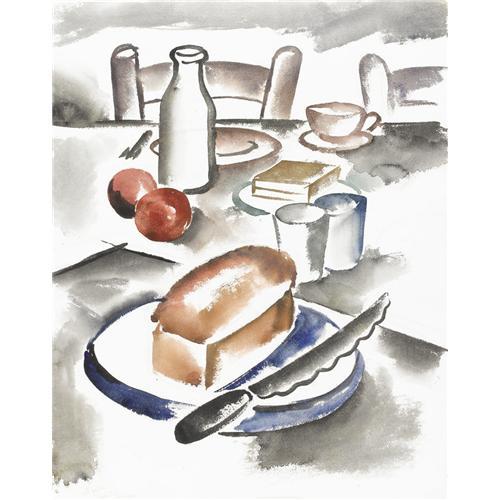 <B>COREEN MARY SPELLMAN (1905-1978)</B></I><BR>Untitled Table Still Life, 1933<BR>Watercolor (double sided)<BR>24in. x 19in.<BR>Unsigned, but documented in Mick Spellman's collection<BR><BR>This watercolor was painted in Provincetown, Massachusetts, while Coreen Spellman was studying with Charles Martin in the summer of 1933.<BR><BR>Provenance:<BR>Estate of Mick Spellman<BR>Acquired from the above by the present owner<BR><BR>Literature:<BR>Picture in, <I>The Artwork of Coreen Mary Spellman (1905-1978),</B></I> by James Graham Baker<BR><BR> <B>Condition Report:</B> Excellent condition. Unframed.<BR><BR><b>Shipping:</b> Requires 3rd Party Shipping (<a target="_blank" href="http://www.heritageauctions.com/common/shipping.php">view shipping information</a>)