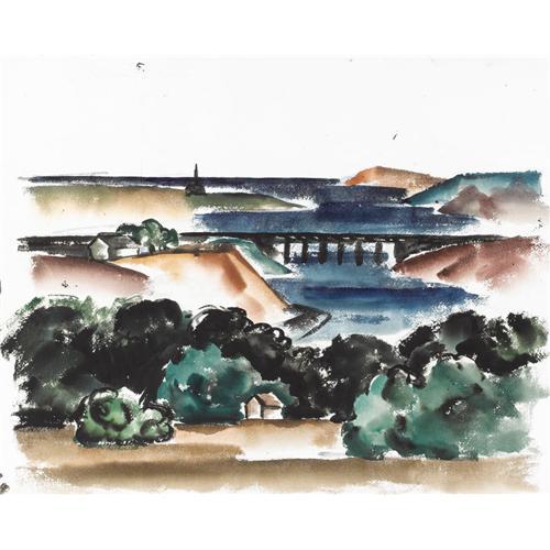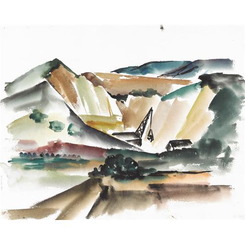 <B>COREEN MARY SPELLMAN (1905-1978)</B></I><BR>Untitled Rock Quarry, 1933<BR>Watercolor (double sided)<BR>19in. x 24in.<BR>Unsigned, but documented in Mick Spellman's collection<BR>Dated lower right<BR><BR>This watercolor was painted in Provincetown, Massachusetts, while Coreen Spellman was studying with Charles Martin in the summer of 1933.<BR><BR>The composition of a rock quarry is both colorful and spontaneous.<BR><BR>Provenance:<BR>Estate of Mick Spellman<BR>Acquired from the above by the present owner<BR><BR>Literature:<BR>Picture in, <I>The Artwork of Coreen Mary Spellman (1905-1978),</B></I> by James Graham Baker<BR><BR> <B>Condition Report:</B> Excellent condition. Unframed.<BR><BR><b>Shipping:</b> Requires 3rd Party Shipping (<a target="_blank" href="http://www.heritageauctions.com/common/shipping.php">view shipping information</a>)