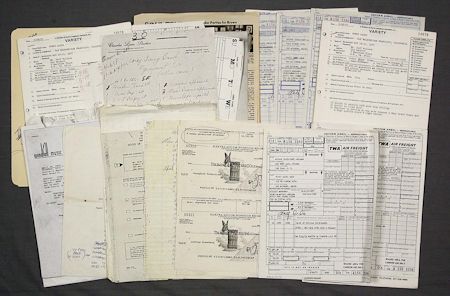 1972-77. This hefty pile of paper ephemera includes numerous contracts from 1977, some Leslie West studio session sheets from 1975, press clippings, as well as other travel and biz-related documents. Approx. 75 pgs. Overall G/VG. From Corky Laing's personal collection.