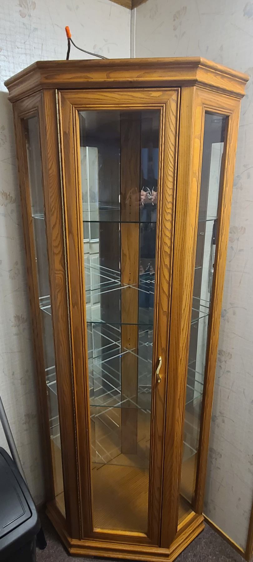 CORNER DISPLAY CABINET WITH LIGHTING AND GLASS SHELVES