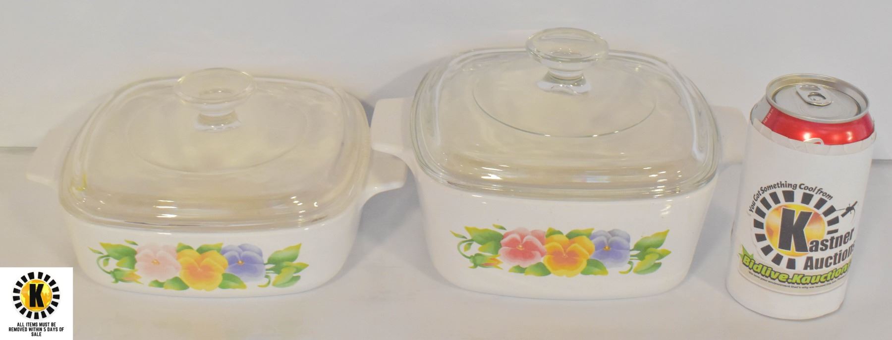 CORNING "FLORAL PATTERN" LIDDED CASSEROLES (2)
