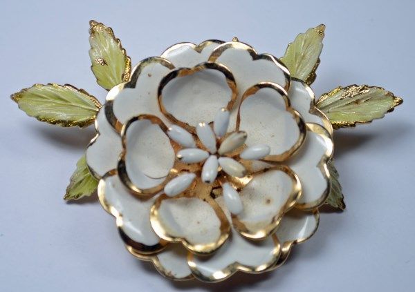 CORO ENAMEL FLOWER BROACH SIGNED. Silvertowne is rated as a top company on Proxiblog because of its expert grading.