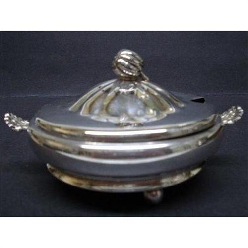 Lovely small antique silver plated butter, It stands on 3 lovely ball feet and consists from 3 pieces, butther dish, glass liner and the lid,which is adorned with lovely figural fruit - as per picture - Excellent used condition, no dents or "bold" spots - Measures about 5 3/4" x 4 1/2" and about 3" high, US Buyer to pay 8.00 for shipping, plus insurance.THANKS.