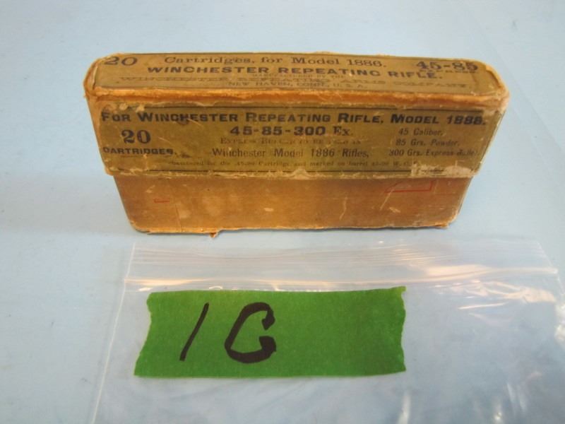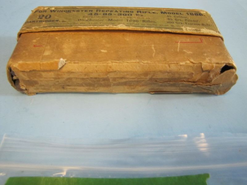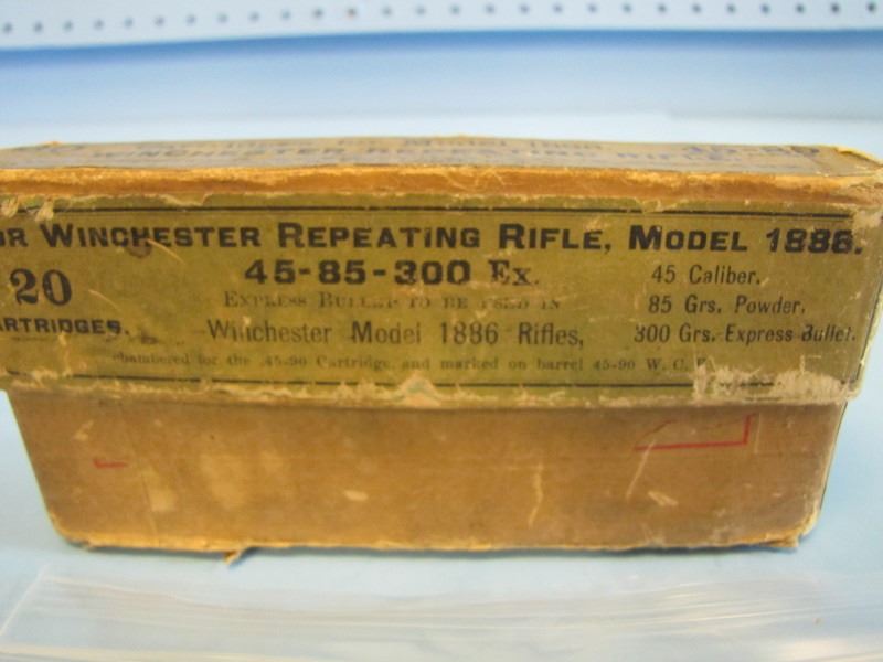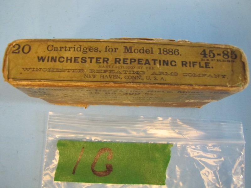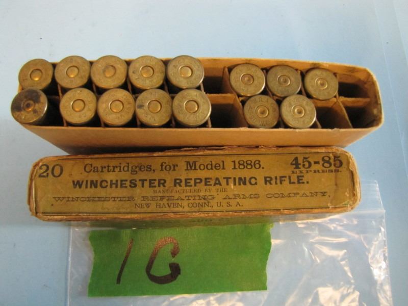collector box with 9 live 45 - 85 and 4 brass CORRECTION-- THERE IS 1 LIVE ROUND OF 45 - 90 AND 1 BRASS OF 45 - 90 THAT WE MISSED IN THE BOX.