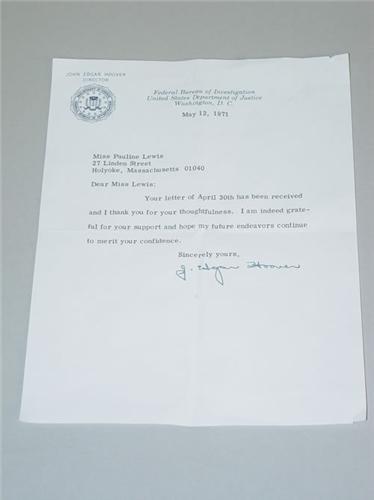 CORRESPONDENCE FROM J. EDGAR HOOVER DATED MAY 12, 1971 W/ FE