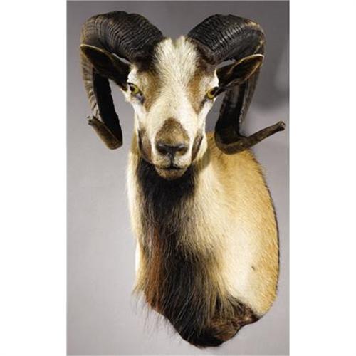 <B>CORSICAN SHEEP SHOULDER MOUNT</B></I><BR> <I>Ovis Corsica</B></I><BR>These rams are now native to many Exotic Game ranches all over the southern U.S., but this specimen is an exceptionally well-colored ram from the West Indies. They vary in size and horn configuration and the present example has a full-curl set of horns and a nice full beard. It measures 17¼ inches from the wall and 22½ high.<BR><BR><b>Shipping:</b> Requires 3rd Party Shipping (<a target="_blank" href="http://www.heritageauctions.com/common/shipping.php">view shipping information</a>)