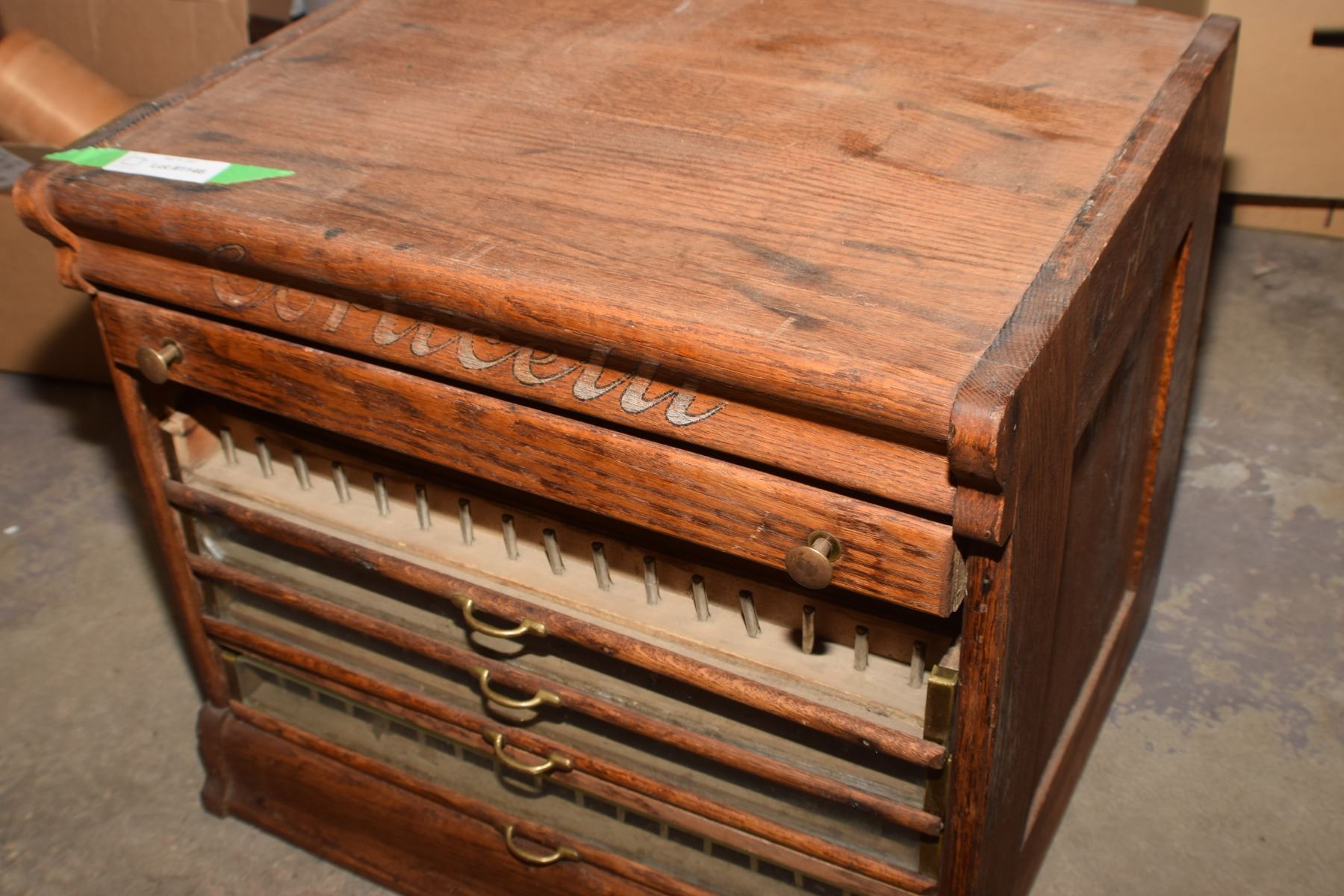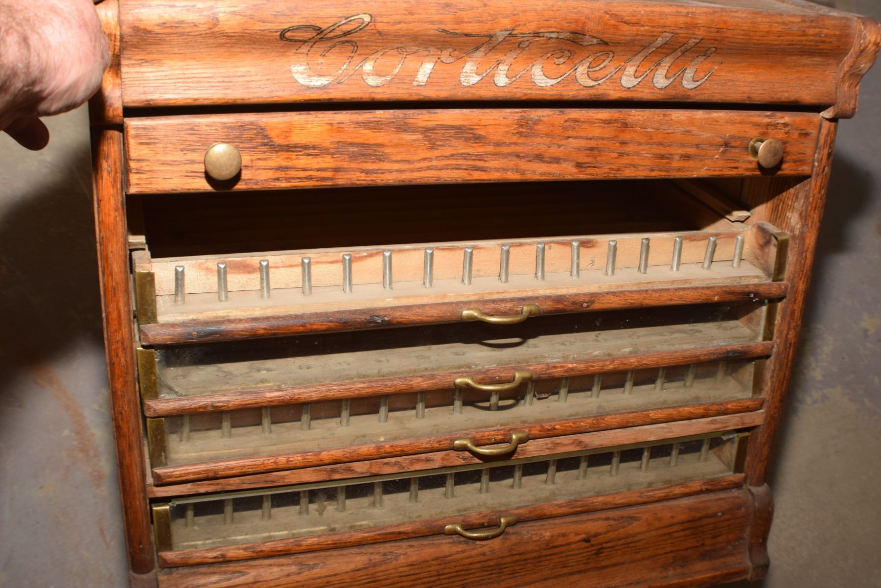 CORTECILLI THREAD STORE CABINET OAK , NEEDS DRAWER MADE 21 W BY 19 "