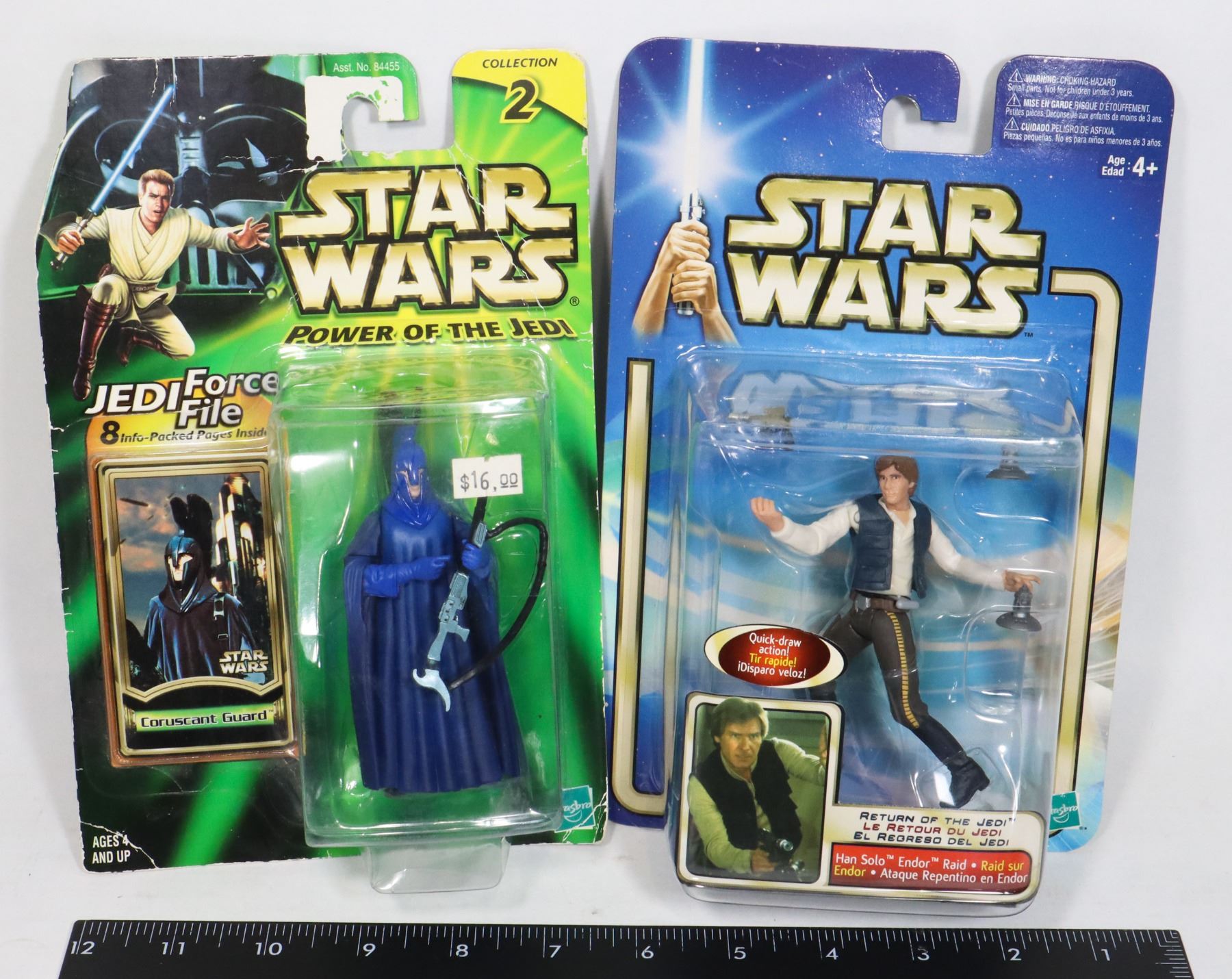 CARDED STAR WARS ACTION FIGURE HASBRO POWER OF THE JEDI AND RETURN OF THE JEDI HAN SOLO ENDOR RAID STAR WARS HASBRO CARDED ACTION FIGURE 2002
