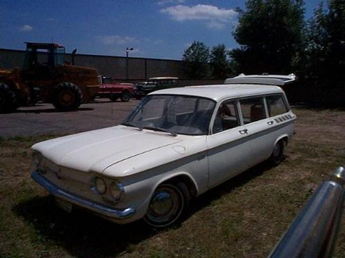 THIS IS A CORVAIR LAKEWOD 700 SERIES STATION WAGON- 6CYLINDER, RUNS AND DRIVES. NEEDS GAS TANK. THE INTERIOR IS ORIGINAL AND COMPLETE. THE DOOR PANELS ARE OFF AND THE INTERIOR NEEDS TO BE CLEANED OR YOU MAY JUST WANT TO REPAIR/REPLACE. IT IS WHITTE/GRAY AND BLACK. THERE IS NO RUST REPAIR DONE. THERE IS RUST ALONG THE BOTTOM OF THE FENDERS AND ROCKERS AND QUARTERS. THE PANELS IN THE BACK ARE COMPLETE. THE SEATS ARE ALL THERE. GLASS IS AL IN TACT. THE VEHICLE IS WHIE IN COLOR. IT IS A 4DR WAGON. AUTOMATIC TRANS. VIN-10535W