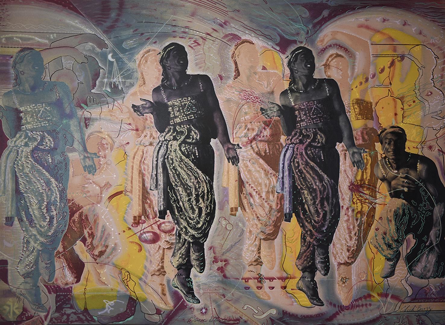 Offset lithograph on paper, limited edition by Charles Lynn Bragg. A Dancer transforms and contorts normal into extraordinary. 30 x 21