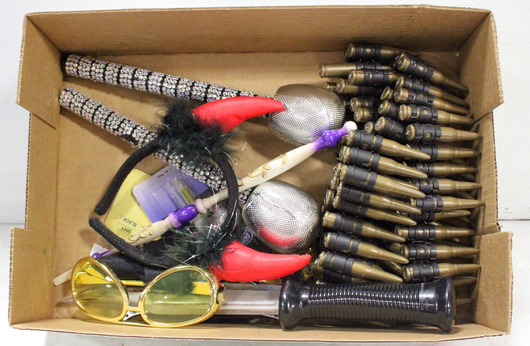 COSTUME ACCESSORIES GLASSES, KNIFE, BULLETS ETC.