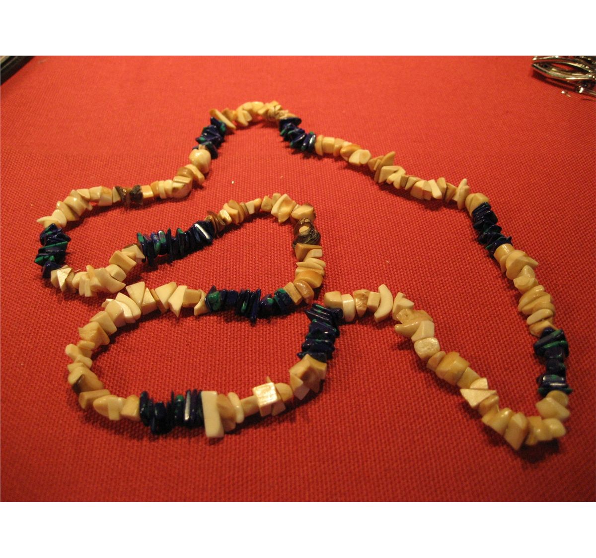 (1) COSTUME JEWELRY ARTISAN HANDMADE BEADED SHELL & BLUE STONE NECKLACE