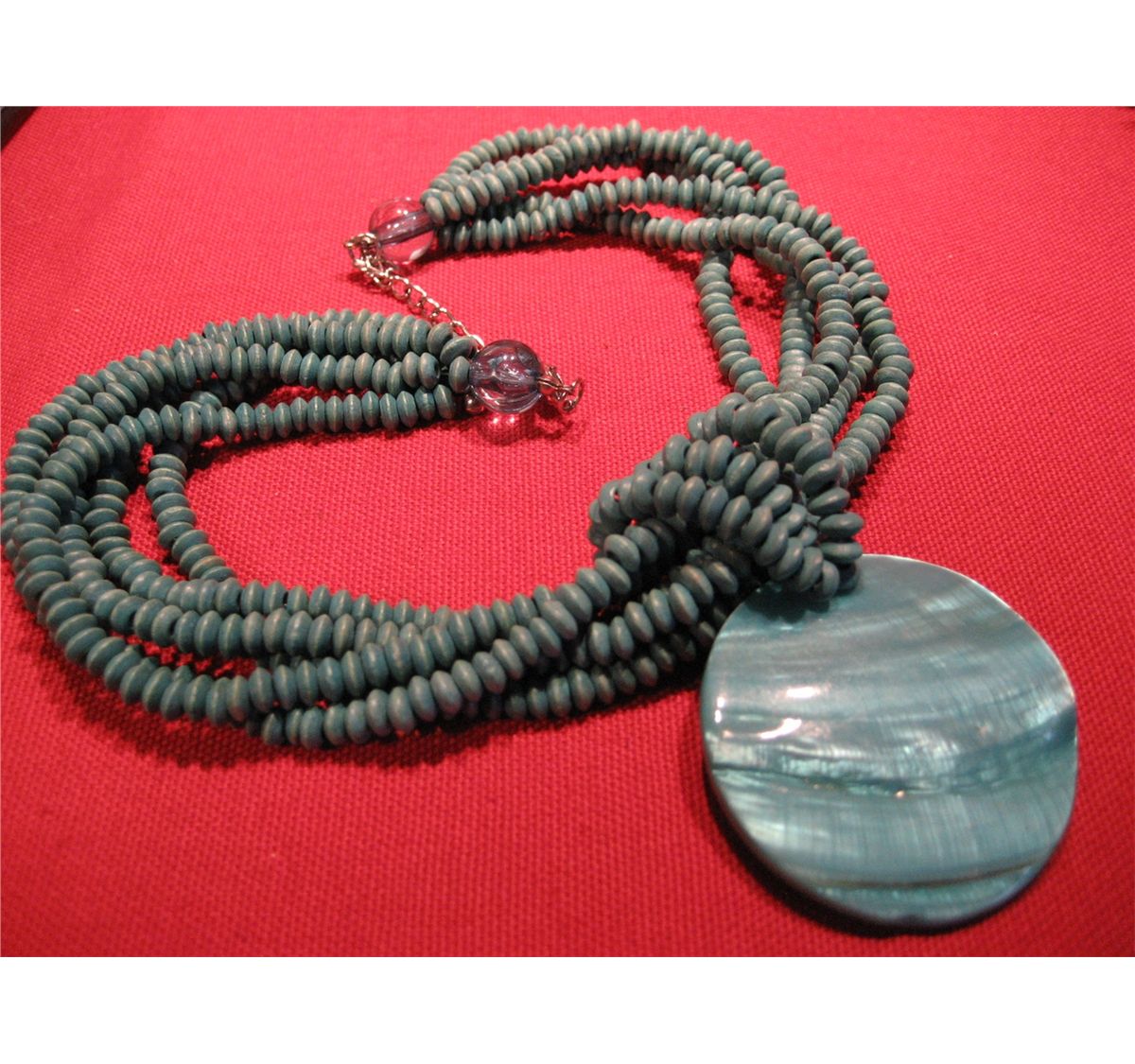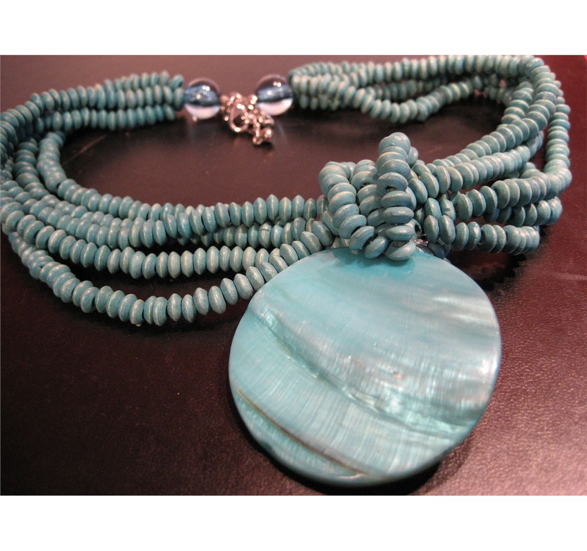 (1) COSTUME JEWELRY ARTISAN STYLE BEADED TURQUOISE COLORED NECKLACE