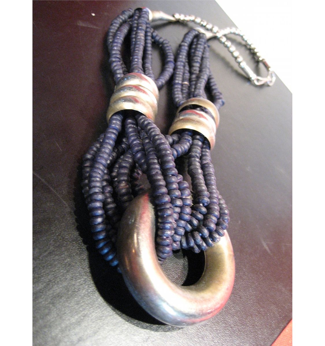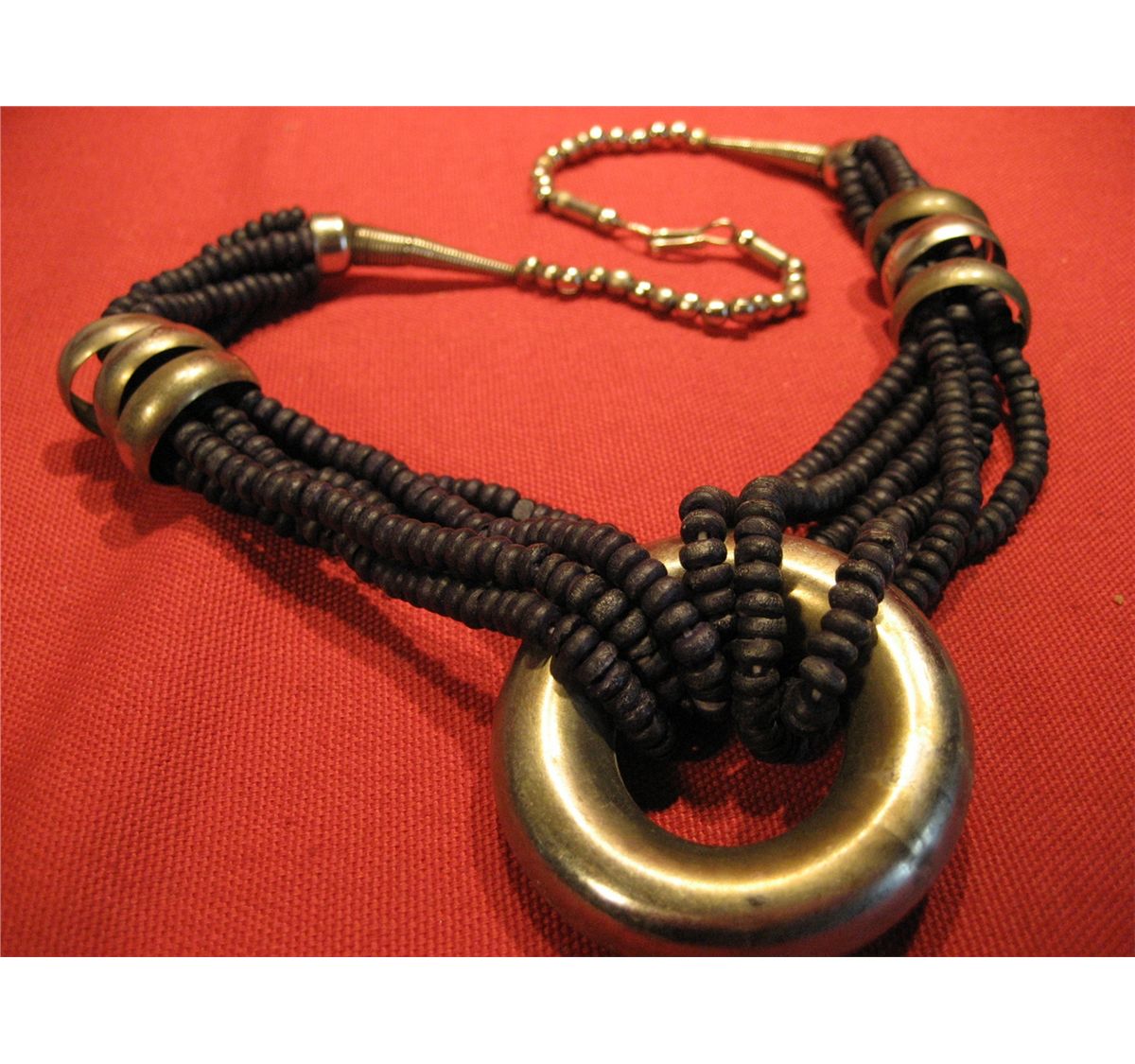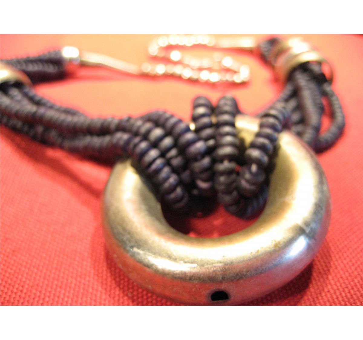 (1) COSTUME JEWELRY BLACK BEADED ARTISAN STYLE NECKLACE