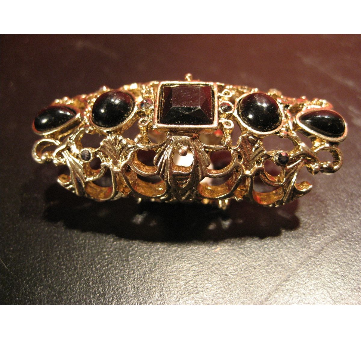 (1) COSTUME JEWELRY BLACK RINESTONE FASHSION RING GOLD TONE