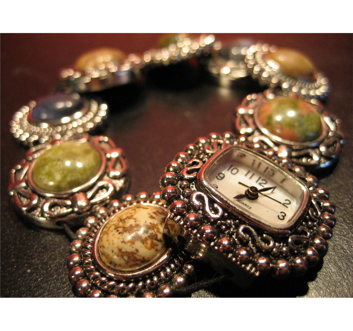 (1) COSTUME JEWELRY FASHION WATCH SUROUNDED DECORTIVE COLOR POLISHED BEADS (NOTE: NEEDS BATTERY)