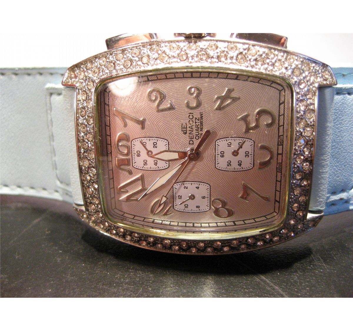 (1) COSTUME JEWELRY FASHISON RHINESTONE LADYS WRIST WATCH DENACCI QUARTZ (NOTE: NEEDS BATTERY)