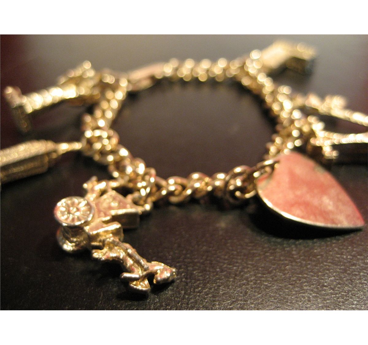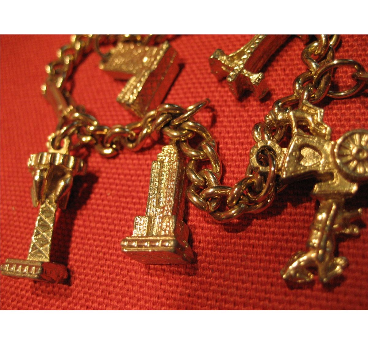 (1) COSTUME JEWELRY GOLD TONE BRACELET WITH CHARMS