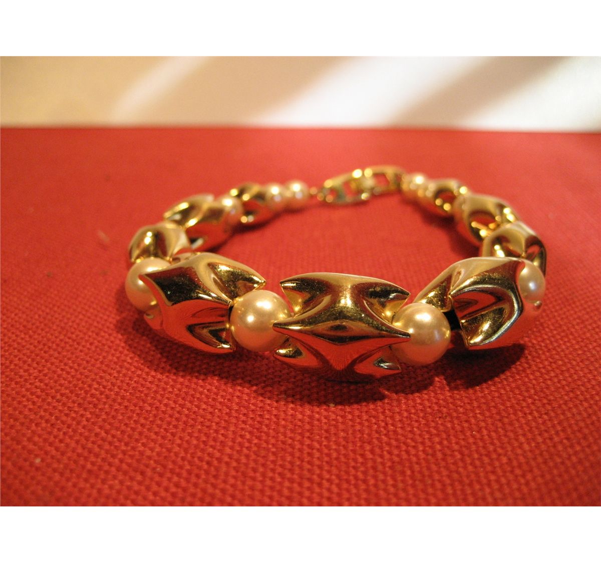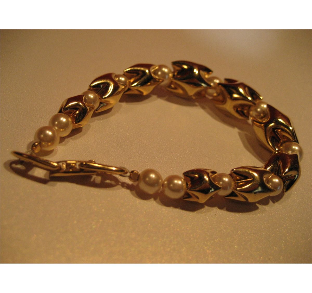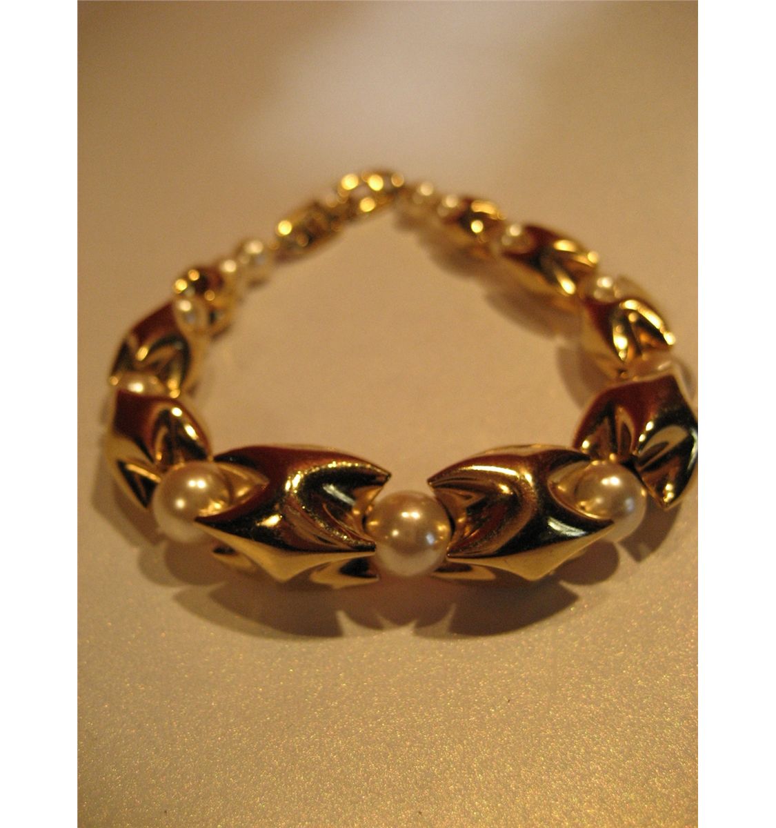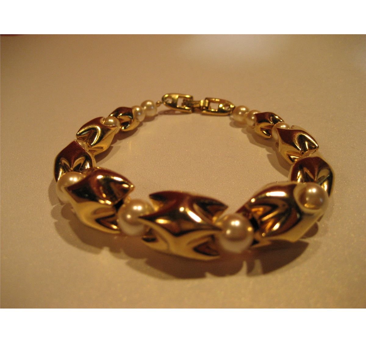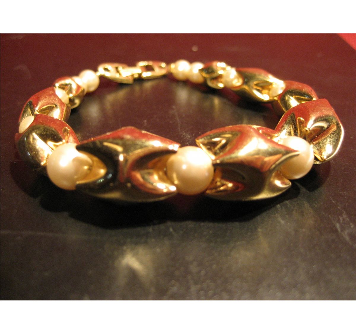 (1) COSTUME JEWELRY GOLD TONE BRACELET WITH PEARL BEADS