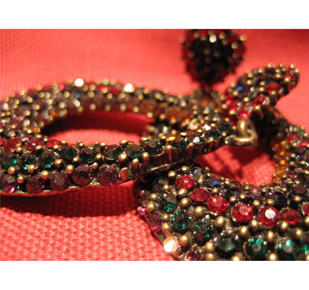 (1) COSTUME JEWELRY PAIR OF MULTI COLORED RHINTSTONE EARRING RINGS