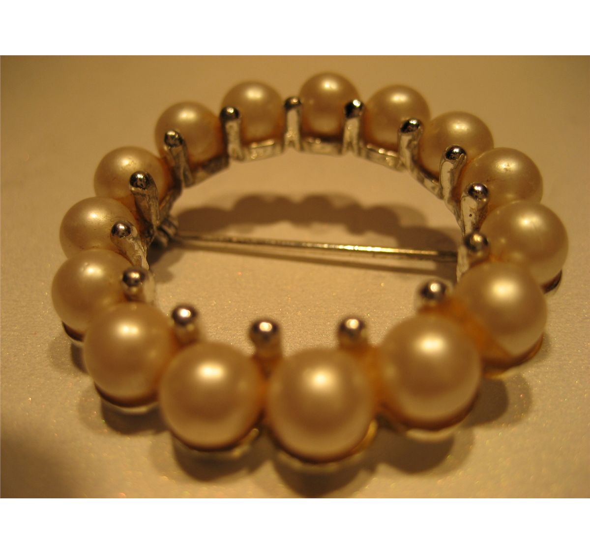 (1) COSTUME JEWELRY PEARL BEADED STYLE BROOCH