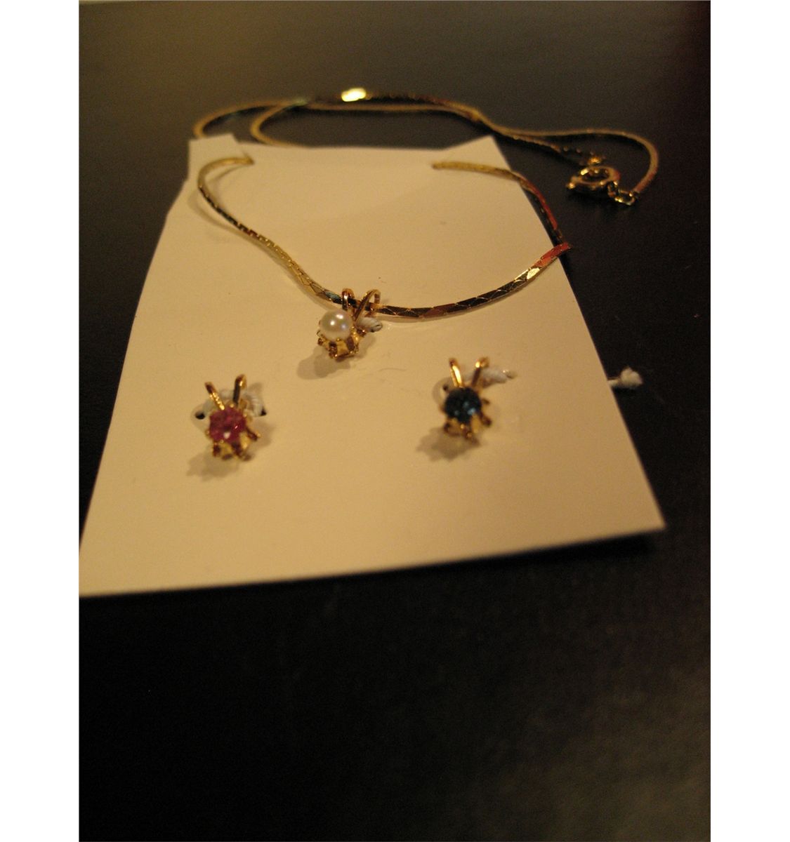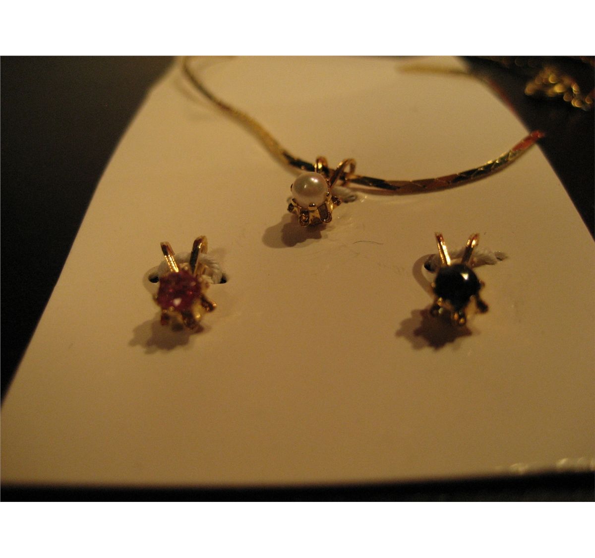 (1) COSTUME JEWELRY RHINESTONE & PEARL CHANGABLE PENDANT GOLD TONE NECKLACE