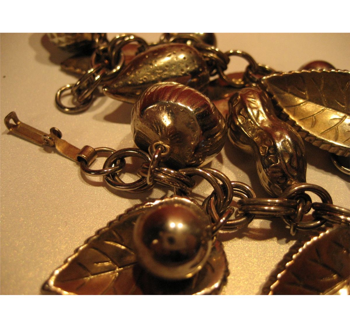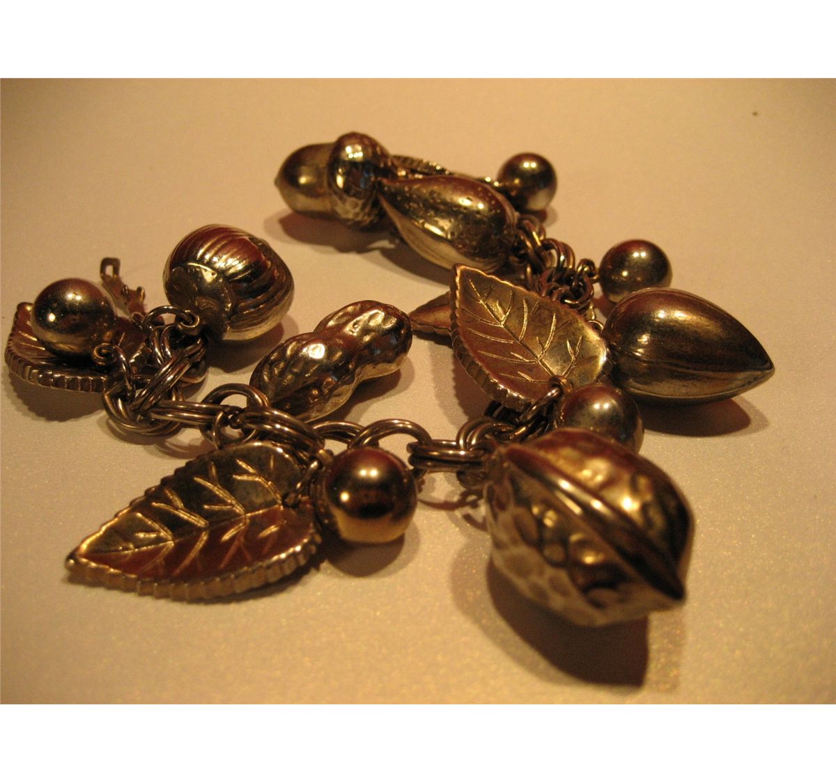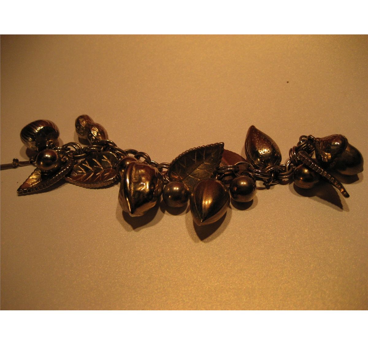 (1) COSTUME JEWELRY SILVER TONE LEAF & ACORN BRACELET