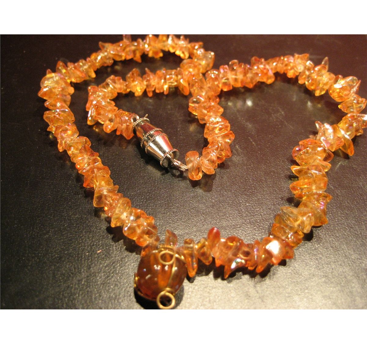 (1) COSTUME JEWELRY VINTAGE BEADED AMBER ARTISAN NECKLACE