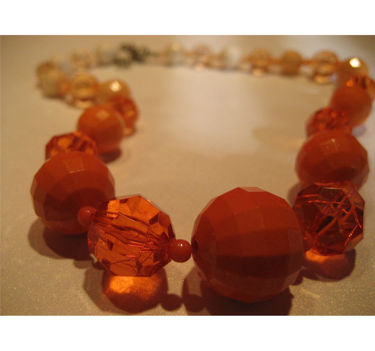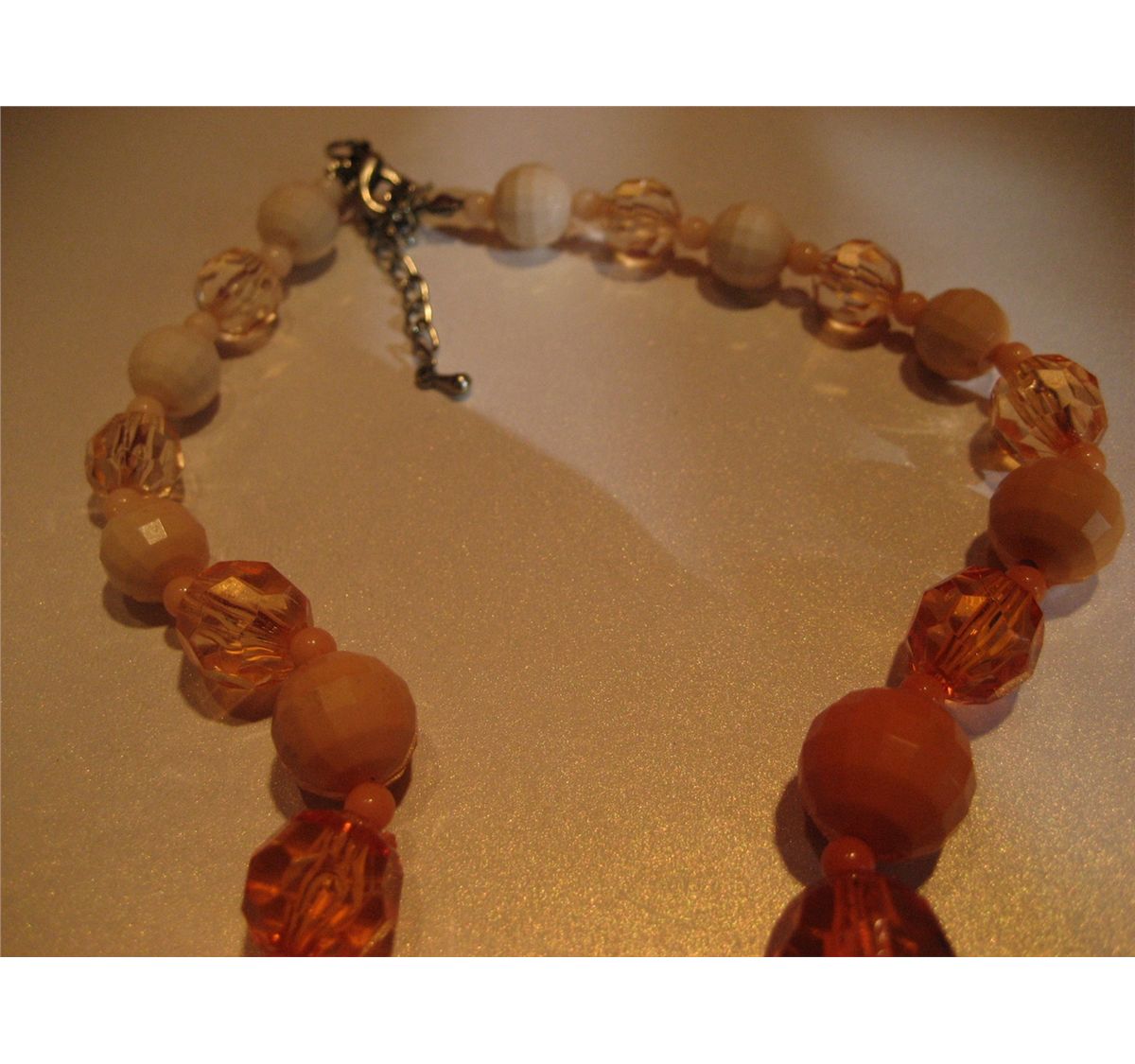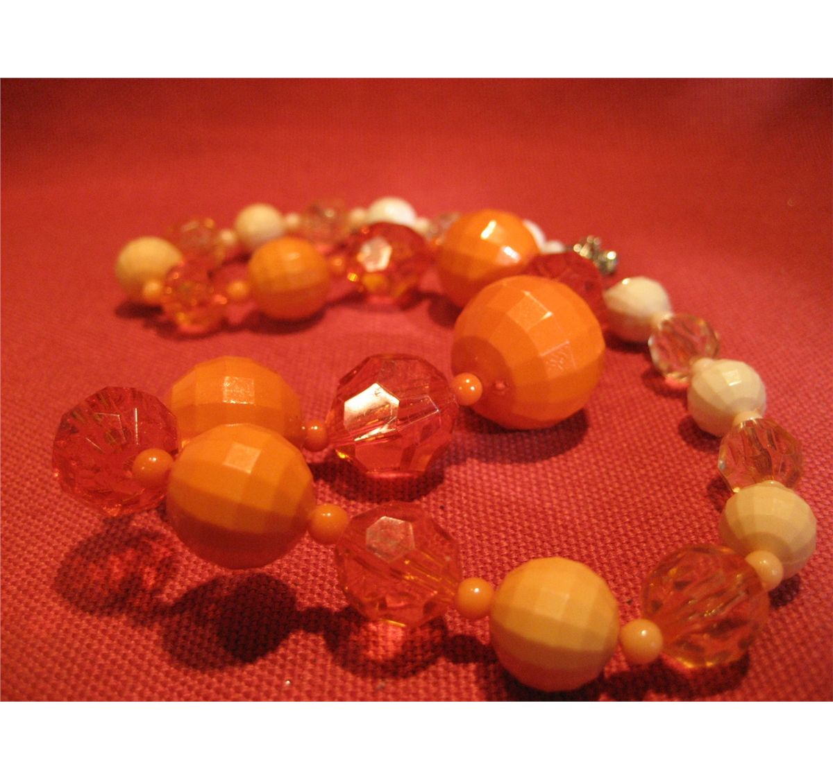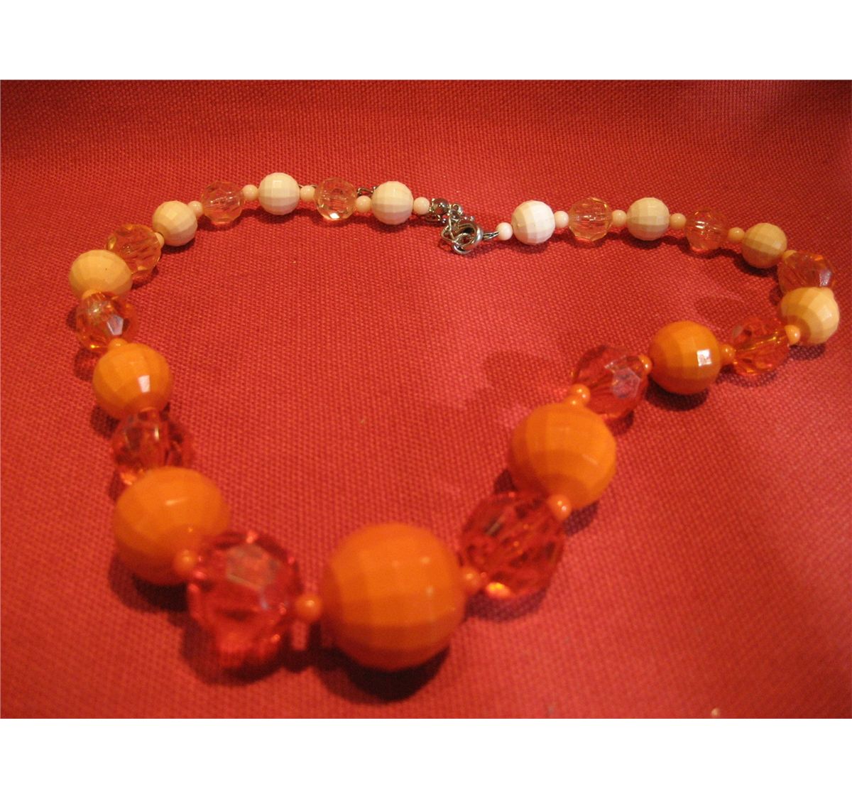 (1) COSTUME JEWELRY VINTAGE ORANGE & WHITE BEADED NECKLACE