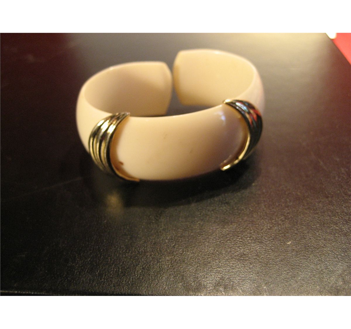 (1) COSTUME JEWELRY VINTAGE PLASTIC CUFF BRACELET SILVER TONE