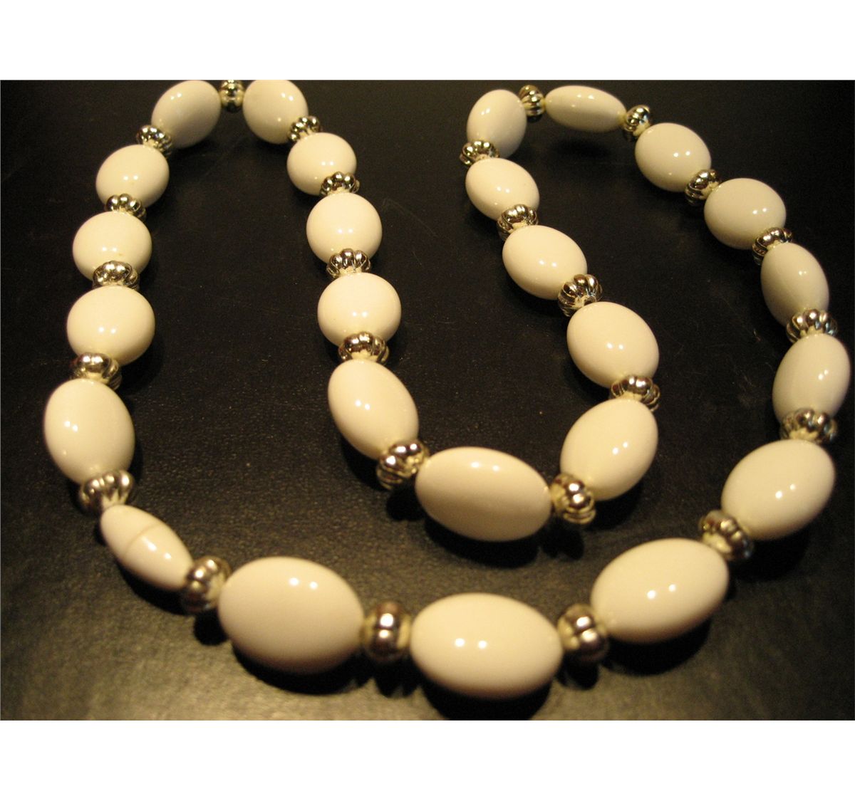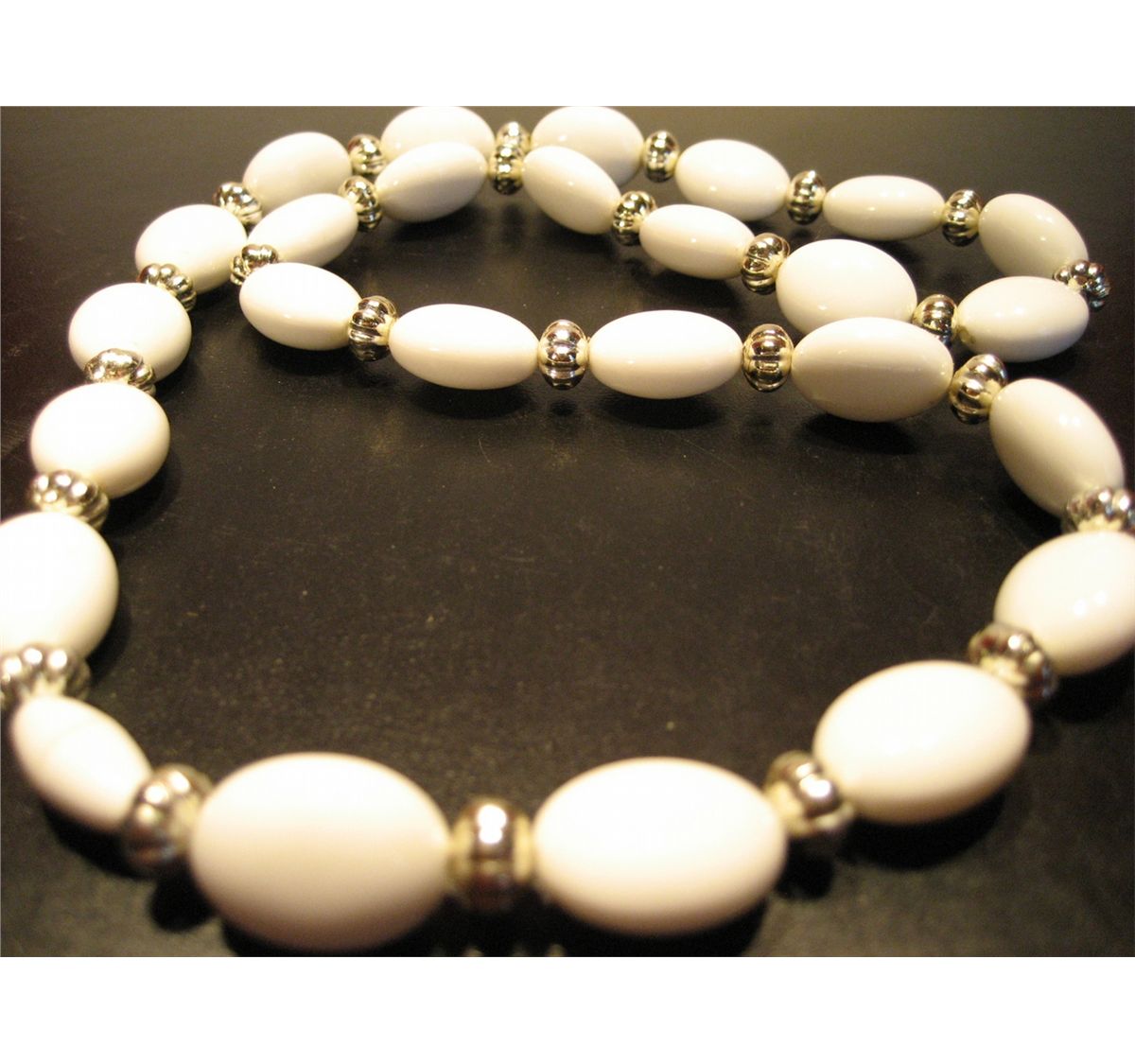 (1) COSTUME JEWELRY VINTAGE WHITE BEADED NECKLACE