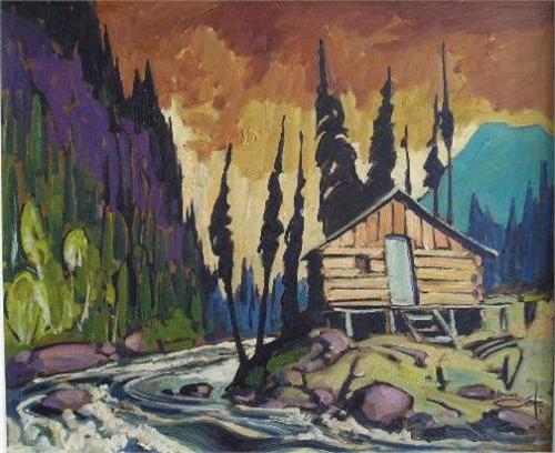 COTÉ, Bruno, 1940- . "Rivière Ste. Marguerite". Huile sur panneau, signée et datée "81". Signée et titrée verso. Oil on board, signed and dated "81". Signed and titled verso. 20" x 24" - 50.8cm x 61cm.
