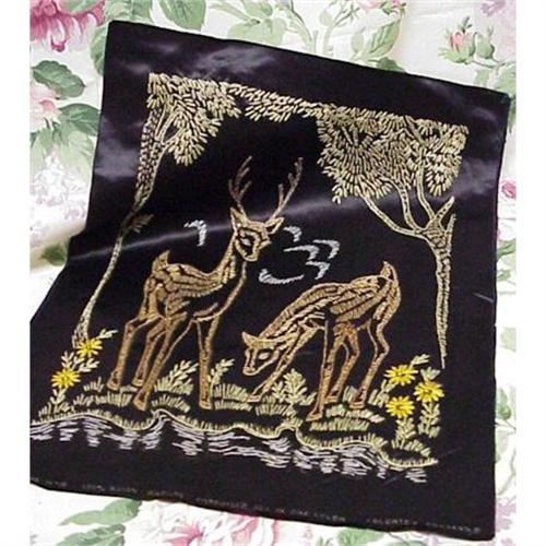 Beautiful vintage embroidery on black cloth, charming picture as per image, measures about 17 1/2 inches long being 13 3/4 inches wide, in excellent condition,ready to frame it or make a pillow from it. How lovely to use or enjoy decorating with! US Buyer to pay 4.00 for shipping plus insurance,Thank You.