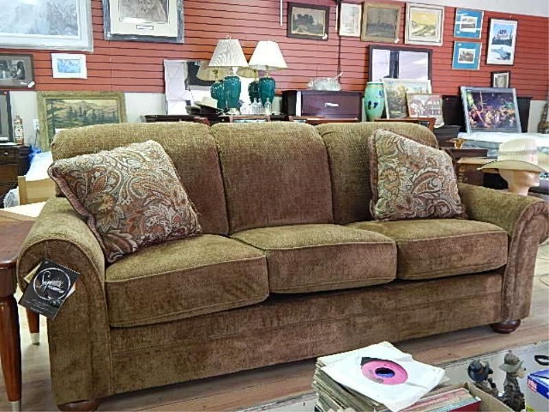COUCH - CARMEL & PAISLEY WITH ACCENT CUSIONS - NEW