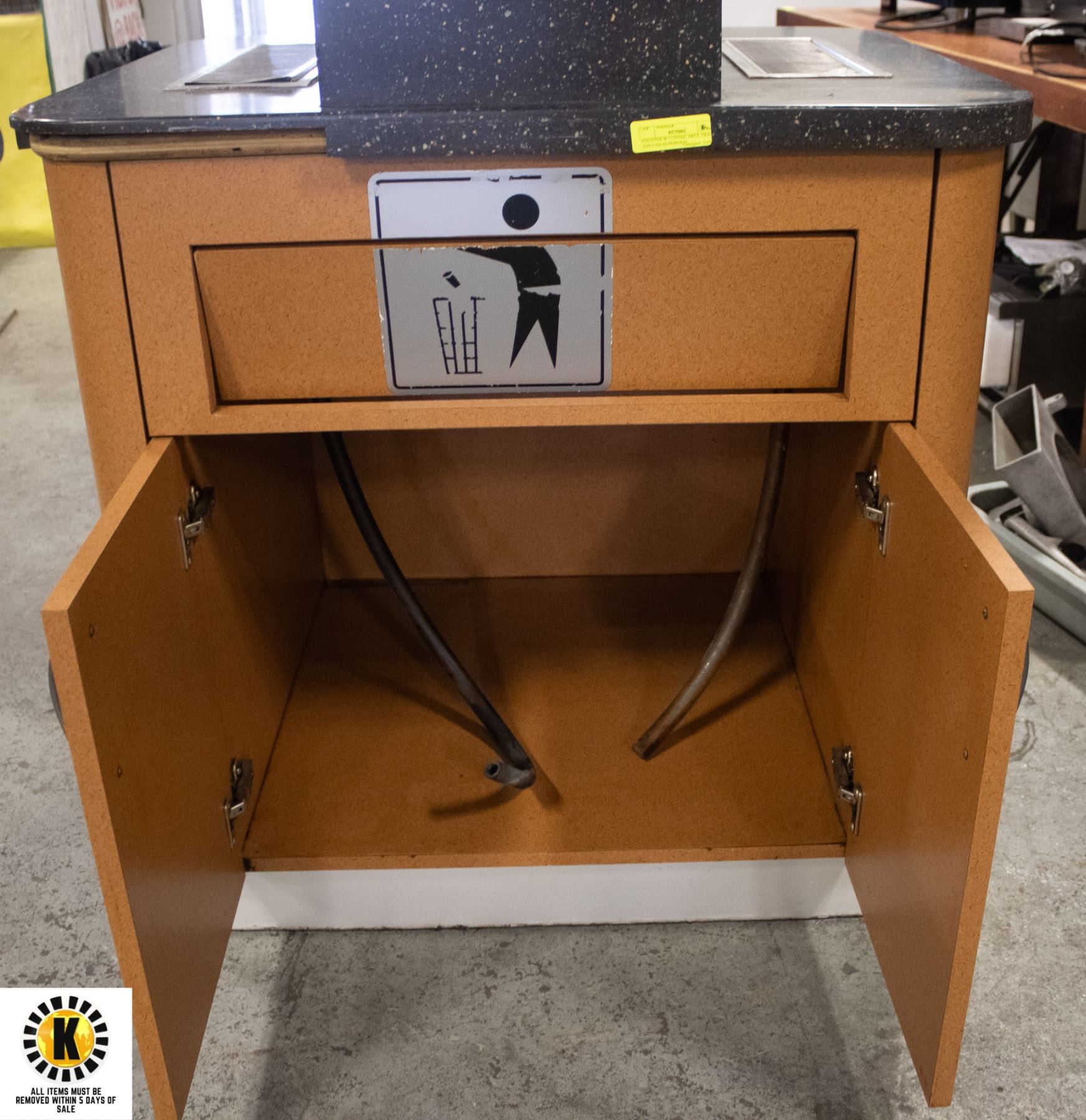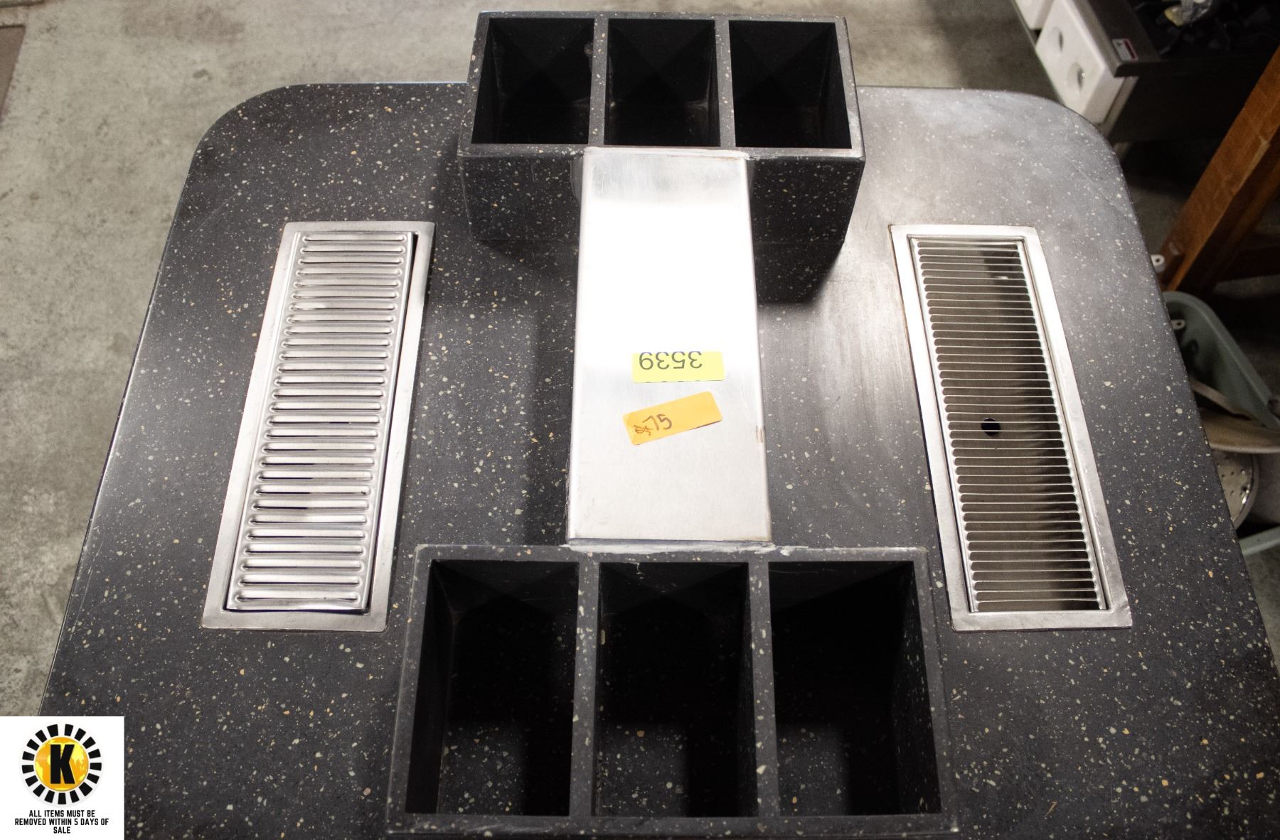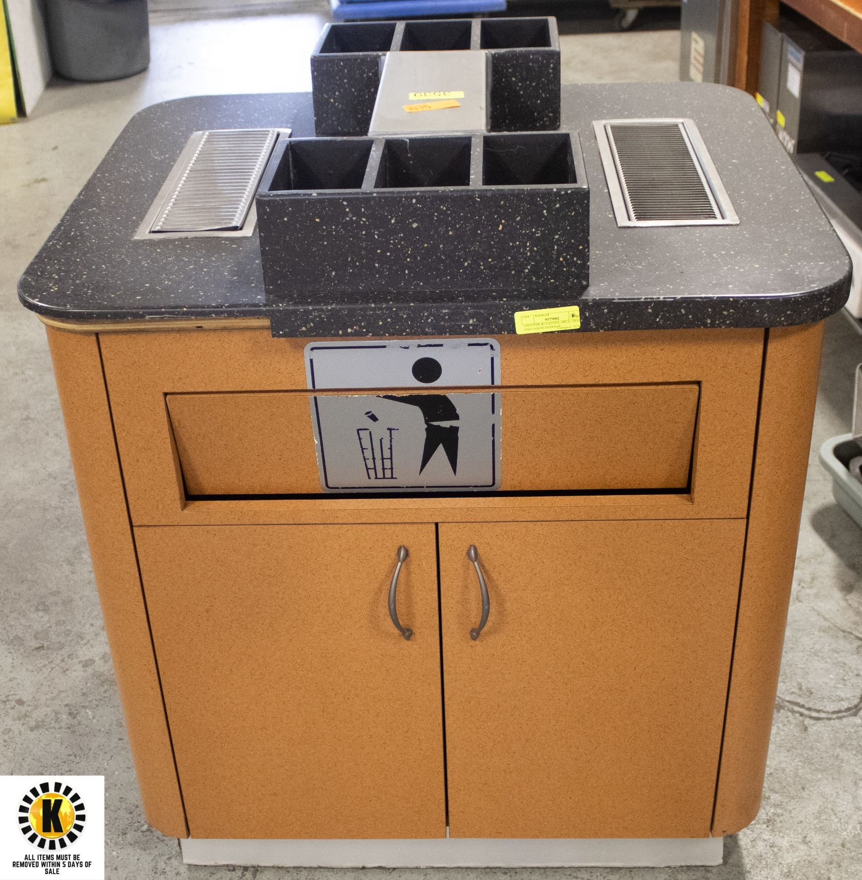COUNTER W/ UTENSIL AREA, TRASH AND LIQUID DISPOSAL