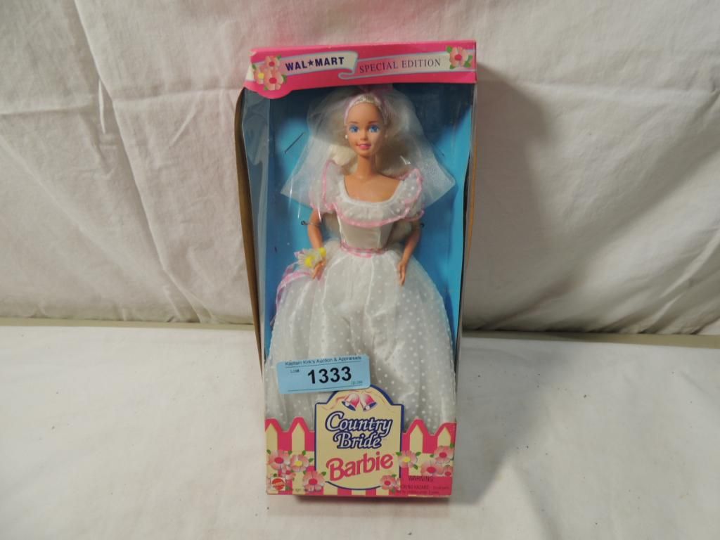 COUNTRY BRIDE BARBIE. WALMART SPECIAL EDITION. IN ORGINAL BOX. GOOD CONDITION. HIGHLY COLLECTIBLE. BARBIE DOLL. AS SHOWN SEE PHOTO FOR MORE DETAILS.
