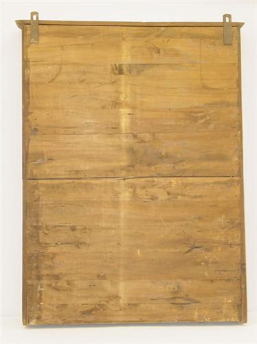 COUNTRY FRENCH PROVINCIAL WALNUT 4 TIER HANGING PLATE SHELF W/ CROWN MOLDING, CHANNEL CARVED FRAME & SCALLOPED APRONS (49" T X 36" W X 4 1/2" D) - WEAR & IMPERFECTIONS