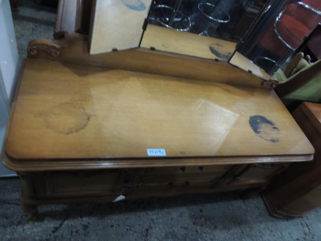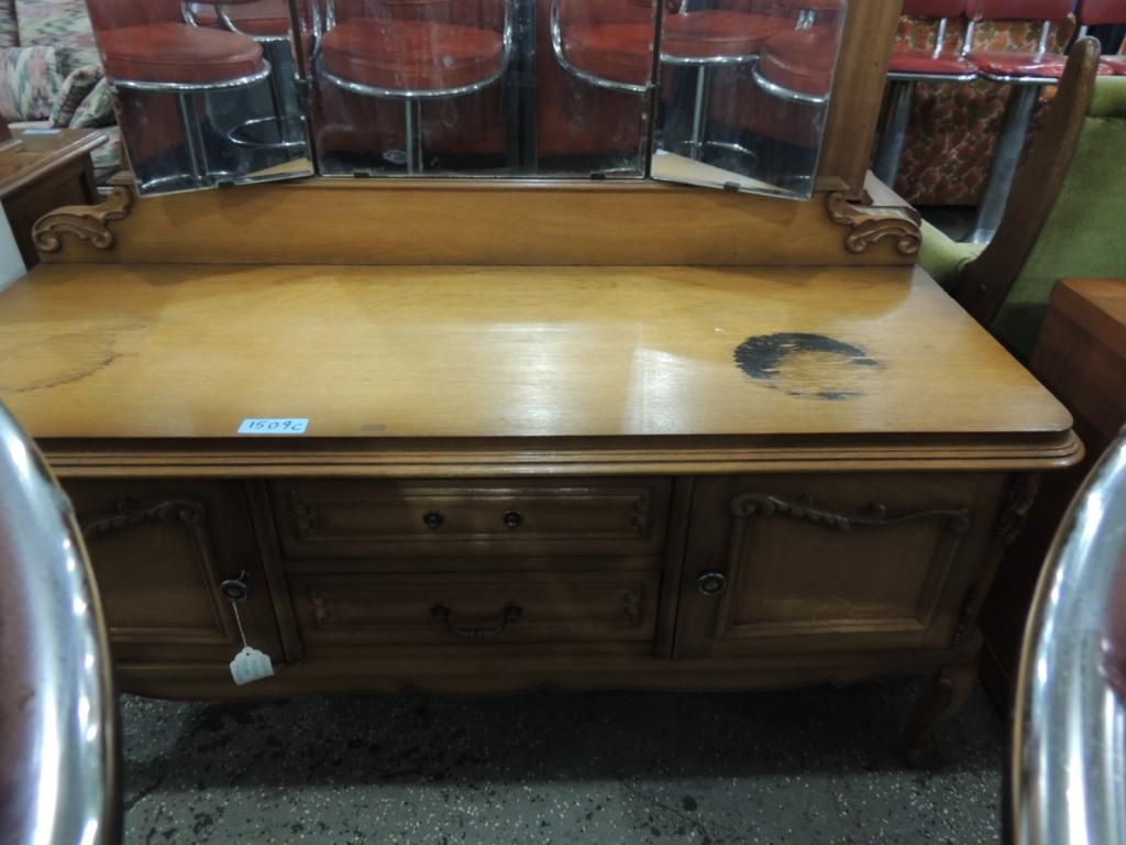 COUNTRY FRENCH TRIPLE MIRROR VANITY MAKEUP VANITY LOW SET OF DRAWERS. GREAT CONDITION AS SHOWN SEE PHOTO FOR MORE DETAILS.