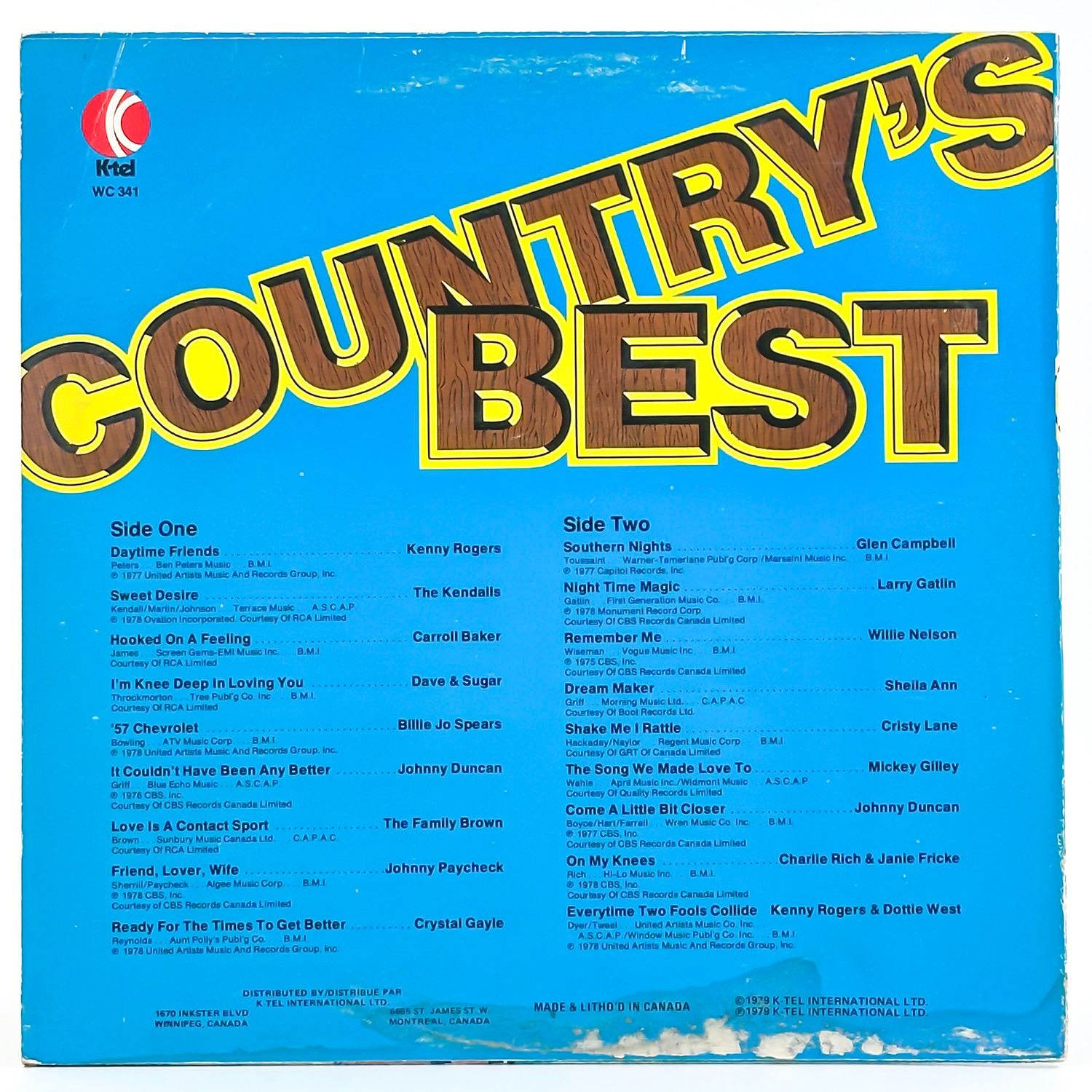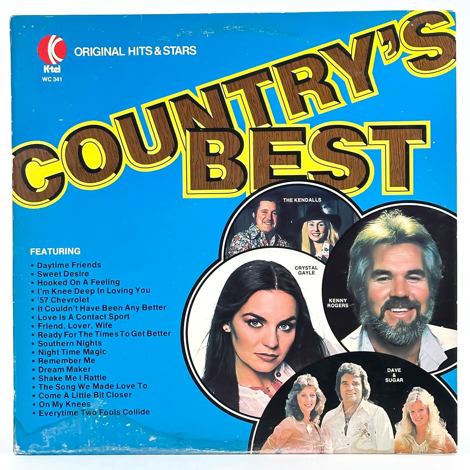 #9028 - VINYL LP RECORD ALBUM. FOLK, WORLD & COUNTRY, COUNTRY. KENNY ROGERS, THE KENDALLS, CARROLL BAKER, DAVE & SUGAR, BILLIE JO SPEARS, JOHNNY DUNCAN, THE FAMILY BROWN, JOHNNY PAYCHECK, CRYSTAL GAYLE, GLEN CAMPBELL, LARRY GATLIN, WILLIE NELSON, SHEILA ANN, CRISTY LANE, MICKEY GILLEY, CHARLIE RICH & JANIE FRICKE, KENNY ROGERS & DOTTIE WEST. K-TEL RECORDS WC 341