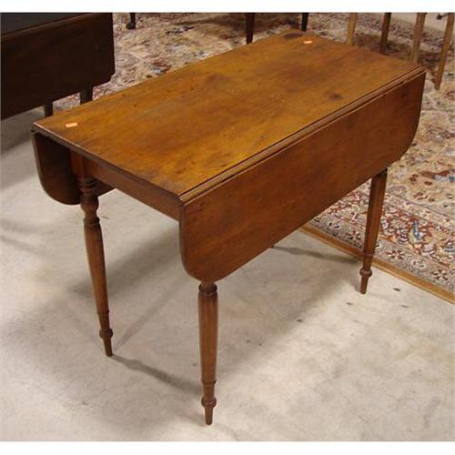 COUNTRY SHERATON CHERRY DROP-LEAF TABLE. Single board top on pencil-post legs. 28.5” H, 36” L, 17.5” W. Each leaf: 9” W