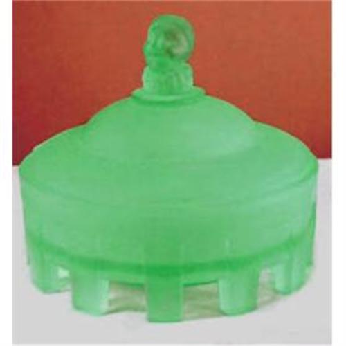 <table width="100%" border="0" cellspacing="0" cellpadding="4"><tr><td><em> </em></td></tr><tr> <td width="100%"> This exquisite satin green frosted glass figural powder jar is known as COURT JESTER and is shown and described on pages 44-45 in Whitmyer: Bedroom & Bathroom Glassware of the Depression Years. The powder jar lid depicts a Jester's head with ruffled collar atop a rounded lid on a twelve footed base. The jar and its lid measures about 4 1/2" tall x 5 1/4" across the base, with both in excellent condition. </td></tr><tr> <td> </td></tr><tr> <td>Reference #: aaCJGSDGADPJ</td></tr><tr><td>Condition:Excellent</td></tr><tr><td>Year:1930s</td></tr><tr><td>Title:COURT JESTER Green Satin Glass Powder Jar</td></tr><tr><td>Location:Orlando, Florida</td></tr></table>